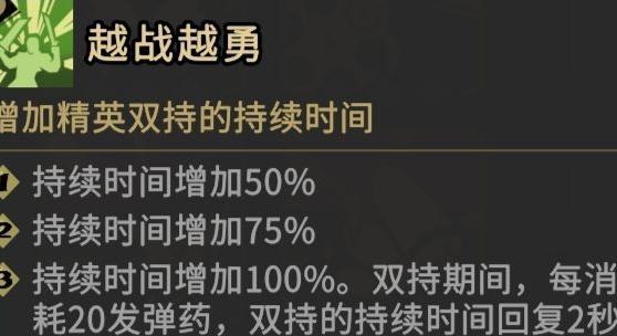 越战越勇+3:消耗子弹可将大招持续时间延长至300秒。