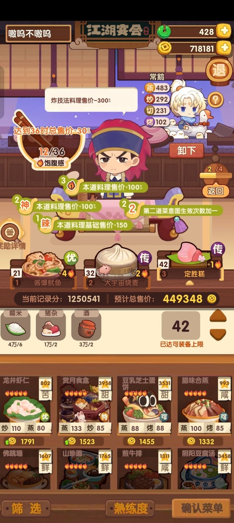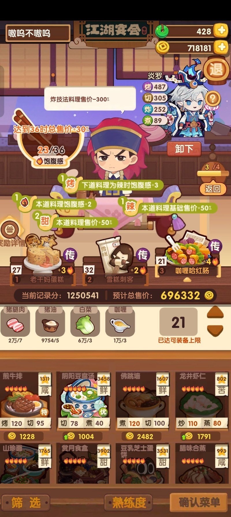 初期只需专注单一售价策略,优先选择经典三蒸或煮切获取分数,若饱腹度不足,可调整为三烤或三炒方案。