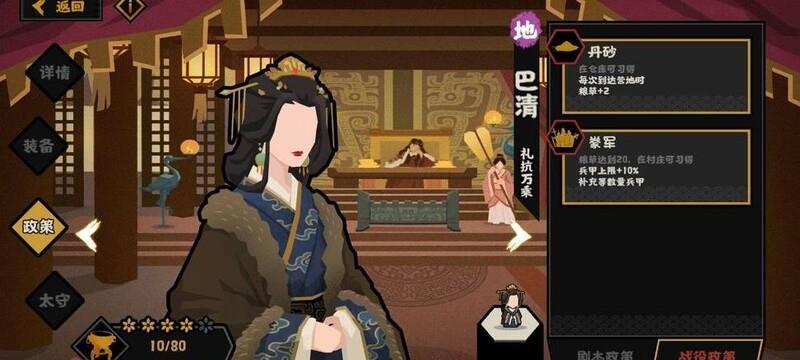 巴清虽技能不及羲和,但对新手十分友好,其技能兼具双重效果,可有效提升粮草产量,适合初期发育使用。
