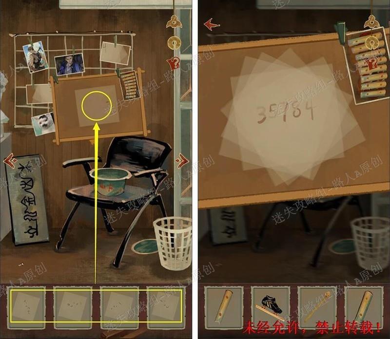 将四张描红纸放入板中并调整至正确方位,即可获得密码35784。