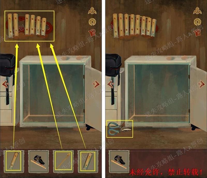 将两个琴键装到钟琴上,用刀柄敲击并输入密码35784,随后拾取掉落的剪刀即可完成操作。