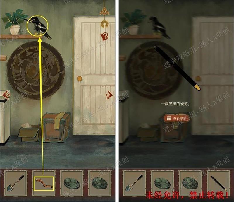 用蚯蚓喂八哥,捡起掉落的炭笔即可完成任务。
