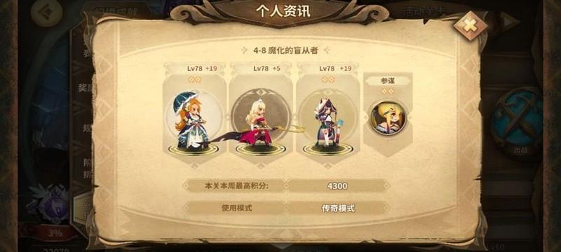 阵容搭配:18级蓝黛、192级千雪SP、102级丰国,搭配两位强力贝塔参谋。注意仅192级卡莲可节省精力,191级卡莲与蓝黛消耗相同,且会争夺千雪的参谋位置。