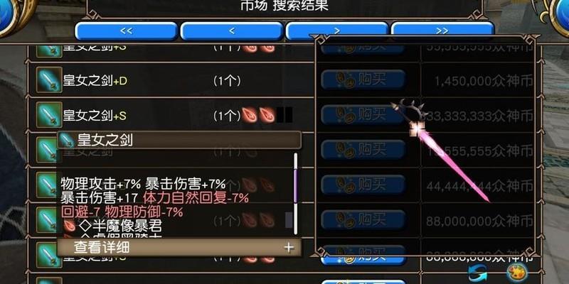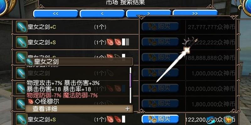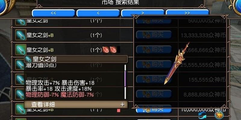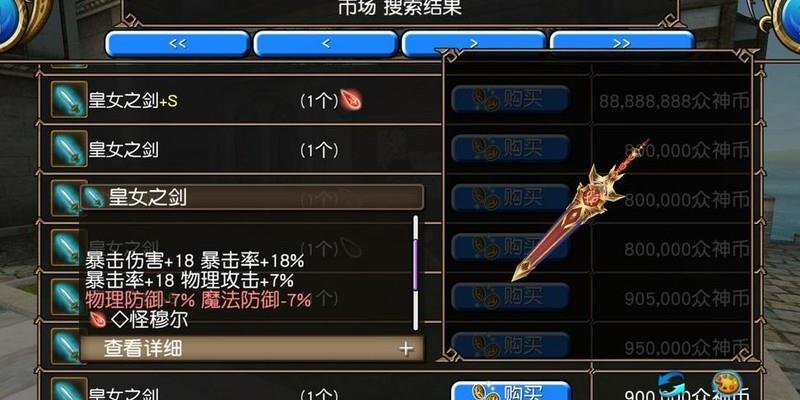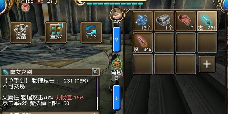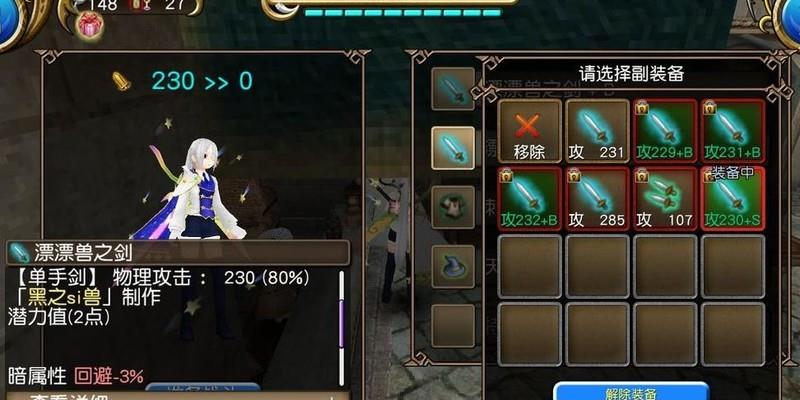 王掉落的皇女剑相对容易获得,因刷皇女的人较多,建议获取一把单孔且攻击力尚可的再使用。