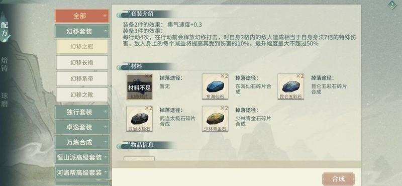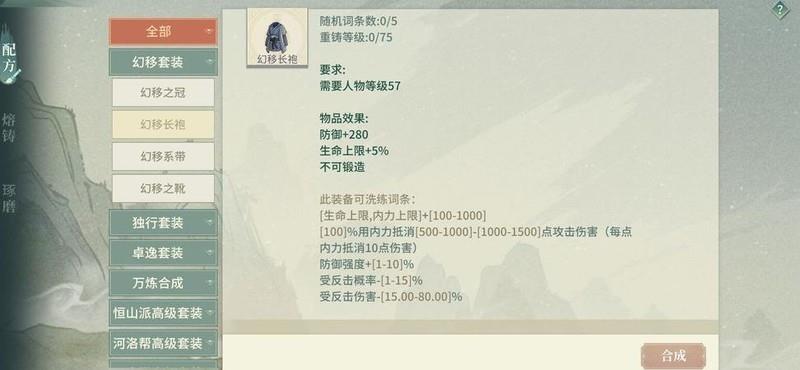 可更换新版本60系列幻移套装,60级装备属性优秀,尤其衣服能洗出15%反击抵抗,此属性极为关键,务必达成。