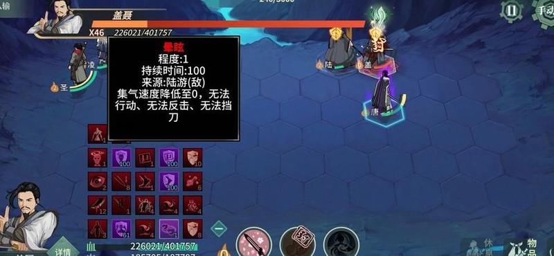 当陆游处于Boss两格范围内时,凭借此套配置,其每回合每次攻击均有至少30%几率触发重伤、内伤、麻痹、迟缓、抗性降低、伤害加深、破甲、点穴、封穴、定身、眩晕或迷茫等十二种负面状态之一。