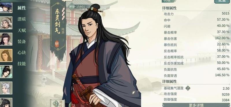 装备精炼后,心决等级满时命中率超85%,反击抗性过50%,负面效果穿透达160%以上。