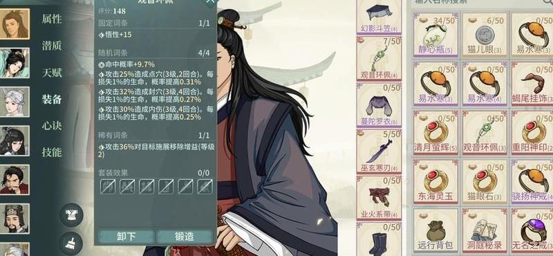 饰品选择观音佩的主要原因在于其独特效果:不仅有一定概率清除 boss 的增益状态,还能附加三种负面效果。虽然这些负面状态对 boss 实际影响有限,但多数 boss 每回合都会随机移除一个减益。因此,通过叠加更多负面状态,可以有效降低 boss 清除关键减益的概率,从而提升战斗中的控制效率与输出稳定性,使战斗节奏更可控。