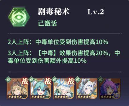当特定阵容上场时,会触发战斗羁绊,为队伍带来增益效果。例如,毒伤阵容可激活同源之力与剧毒秘术两种羁绊,提升中毒伤害并增加生命值。