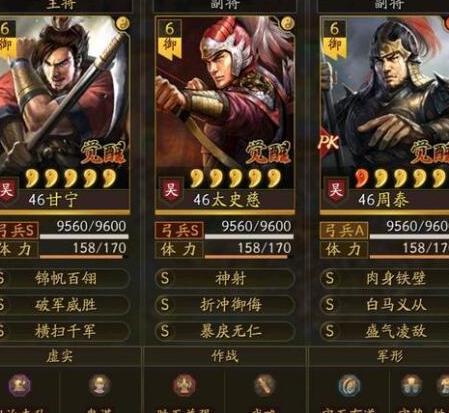 该阵容胜负虽具随机性,但即便无强化的甘宁也有极强爆发力,搭配周泰便成为平民玩家必选的经典组合之一。