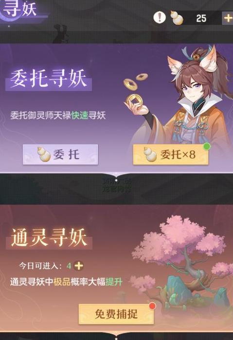 若觉手动捕捉妖灵耗时,可使用委托寻妖功能,系统将代为捕捉一只或多只妖灵,同时还有机会额外获得丰富资源,轻松提升收集效率。