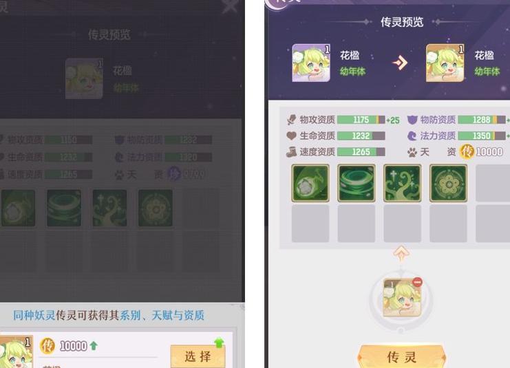 当御灵师获得一只同种类但实力更强的妖灵时,可通过功能,将其品质、资质与技能完整转移至当前培养的较弱妖灵上,实现能力继承,大幅提升战力。