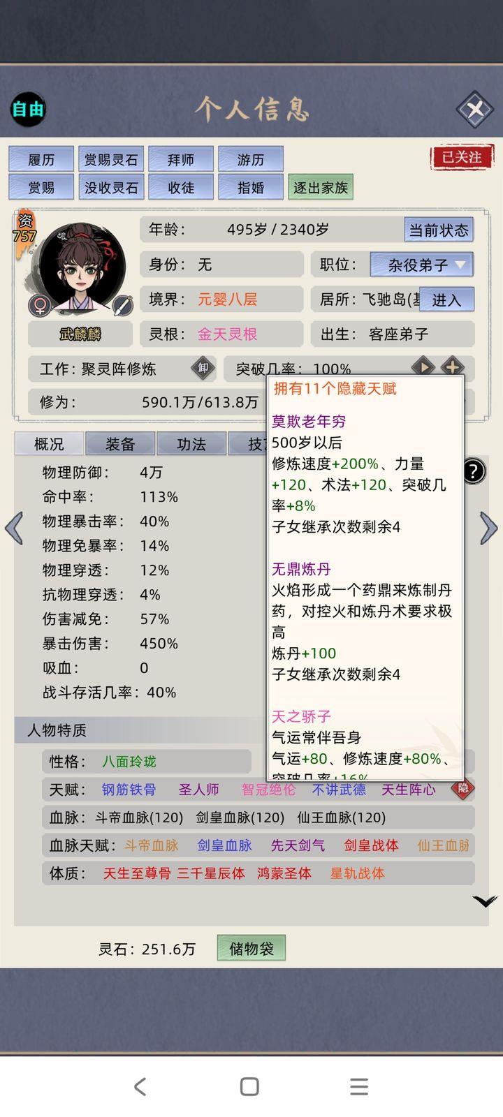 完成前两个名人抓捕与配种计划后,想必你的弟子修炼速度已远超常人了吧!