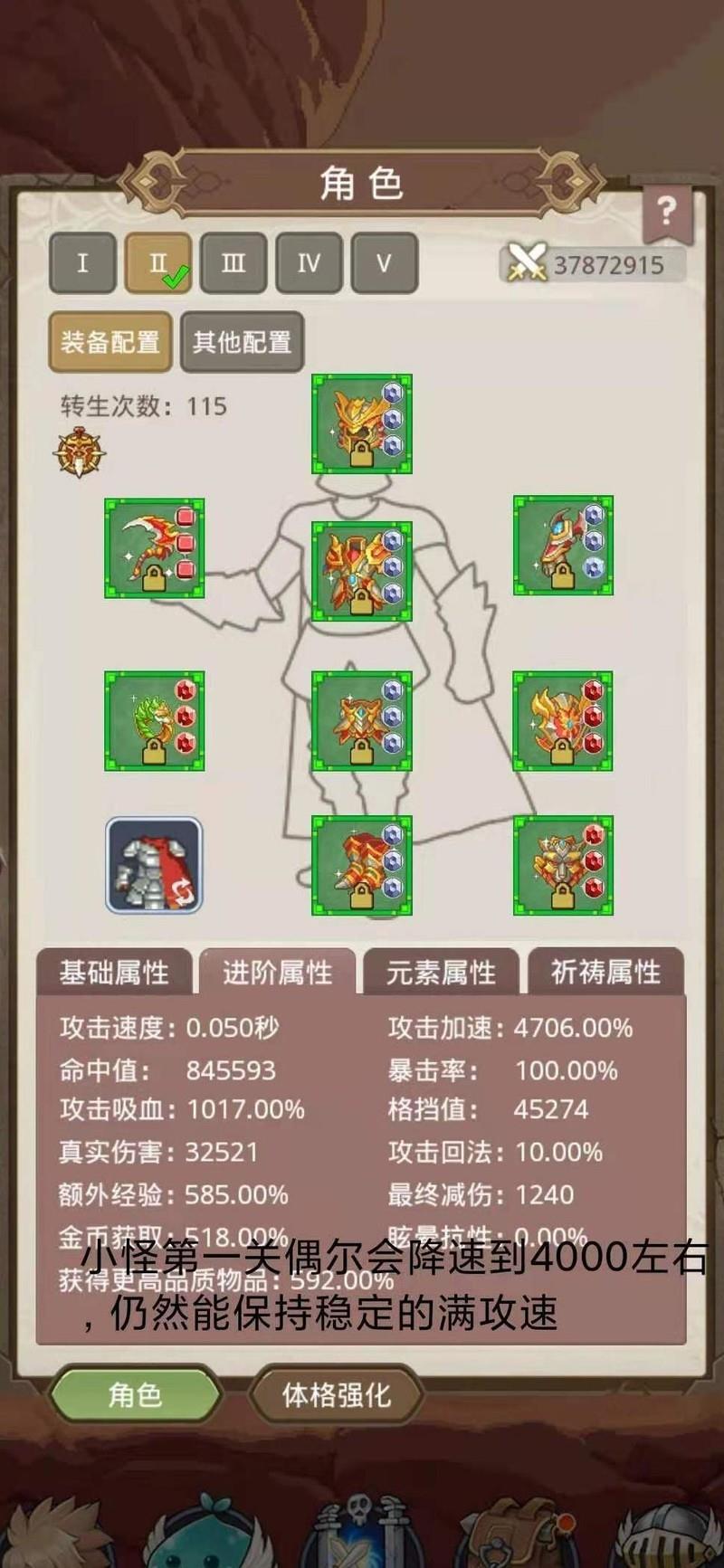 自然牵涉到设计者的构思逻辑。已知怪物具备混合伤害,且每过一关都会附加特定元素的负面机制。第二关已体现出冰属性的减速效果,雷属性带来眩晕,毒属性则强制持续掉血。至于第三关的具体元素惩罚,目前尚不明确。若官方有意限制元素流派的发展,只需在毒性机制上加强即可——例如让你不再依赖高血量生存,转而被迫将防御装备如帽子强化至满星十级。然而到了第四关结束时,真正的机制才浮出水面:真实伤害仍未被元素体系覆盖。即便你在元素套装上投入十万氪金,若无法造成真实伤害,依然寸步难行。系统其实在引导玩家回归真伤路线,专注提升真实伤害输出与对应部位的强化。两分钟限时挑战的设计颇具深意,逼迫玩家在尝试中察觉:单一元素套路终将碰壁,最终还得回到物理或真伤体系。轮回往复,路径早已埋下线索。答案或许就藏在图腾的属性组合之中。所谓真伤免疫控制,是否将成为新的门槛设定?