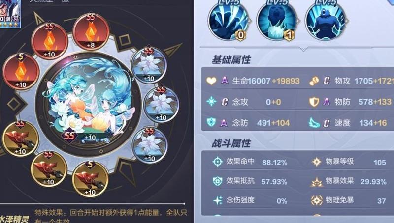 在小宇宙搭配方面,月相小宇宙主要侧重提升会心与效果抵抗能力,传奇小宇宙选择较为常规。值得注意的是,海马装配了新推出的双脚蛇小宇宙,其被动效果与海马自身技能形成良好联动,尤其对速度高于自身的目标可触发显著额外伤害,有效增强了队伍在单体输出方面的表现力,整体输出补足效果出色。