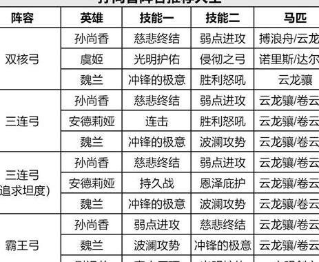 配置与单核弓相似,孙尚香搭配慈悲与弱点为固定组合,通常保持不变。