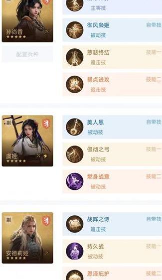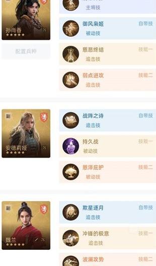 这套阵容战斗力尚可,优势在于对平民玩家友好,只需安德莉娅一星以上,其他武将无特殊要求。技能搭配中持久战与恩泽为固定组合,若缺少恩泽庇护,则不推荐此玩法。