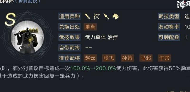 推荐2号位武技选择酒池肉林,虽常与怒目退敌搭配效果更佳,但考虑到关羽的承伤定位,此技能由其携带更为契合。配合贯颐奋戟可进一步提升收益,既能增强输出能力,又能保障持续作战表现,是兼顾伤害与生存的关键选择。