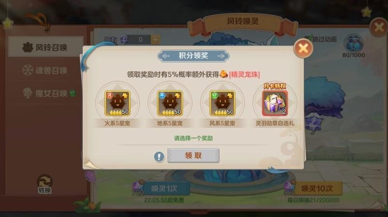 风铃不需要囤积,集齐十个即可进行十连抽。但风铃积分要保留,等到积分兑换中出现5%概率获得精灵龙珠时,再兑换火系和风系五星碎片。火系和风系五星碎片以及先知水晶都要保留,待75级推出珍兽火舞剑心后使用,此时获得珍兽的概率比风铃更高。