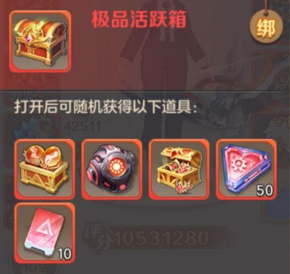 前期收集的惊喜碎片先别急着合成极品活跃箱,可先查看合成后的活跃箱内容,等出现超能战甲核心时再合成使用。