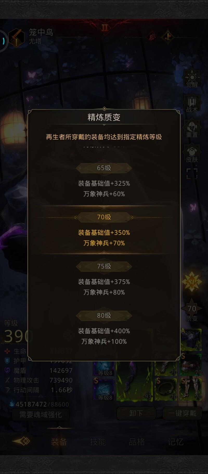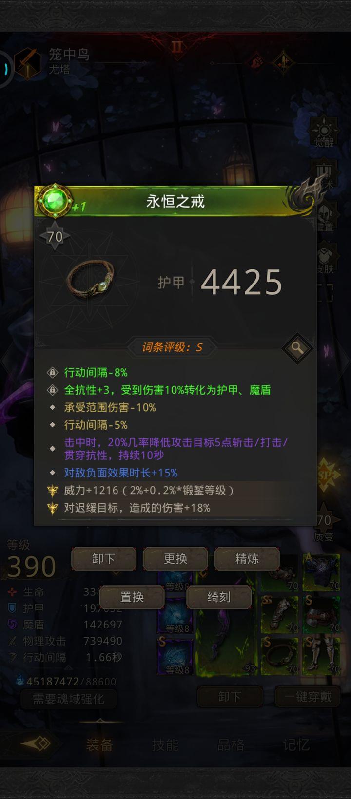 装备基础值为156,精炼质变达350%,属性加成较低,具体效果见图7。