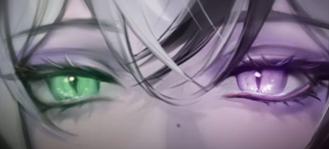 从图中可以看出,橡木匣双枪上分别镶嵌着绿色与淡紫色的圆球状物体,这与她双眼的特征高度相似。由此推测,她的武器与眼睛之间存在某种深层联系。结合PV中那句透过我的眼睛,你看见了什么,或许暗示着视觉与力量的关联。而她所进行的仪式,很可能正是通过这双特殊的眼睛与双枪共同完成,耐人寻味。