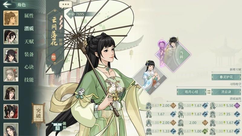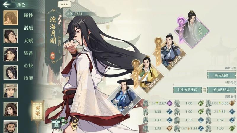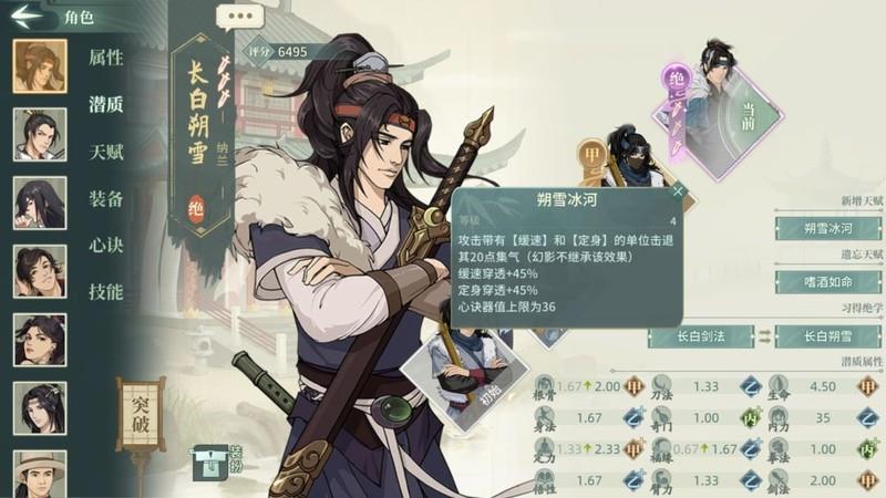 文中数字如00、33表示角色潜力与武学的突破状态,首位为潜力突破等级,次位为武学突破等级。00表示初始解锁,33则代表潜力和武学均达到三次突破。