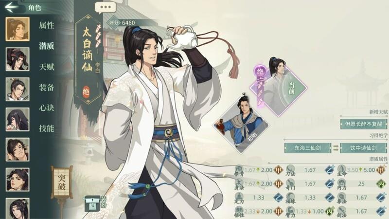 李白作为一名防御型侠客,拥有三个防御心决位,但其天赋却是晕抗穿透,定位略显尴尬。过去常被用作控制角色,依靠莲花棍或自带武学施加控制效果,然而作为坦克时天赋难以发挥作用,表现不尽如人意。作为功能性侠客,心决位配置受限,虽具备九剑带来的身法压制优势,但自身基础身法偏低,限制了发挥。其自带武学仅在特定场合较为实用,例如对抗藏渊长荒时可有效拦截敌方推进。此外,李白可作为太极拳的承载角色,配合控制流派时能发挥不错的控场能力。抽卡方面不推荐专门抽取,00解锁即可满足需求,33满配属于上限投入,性价比不高。