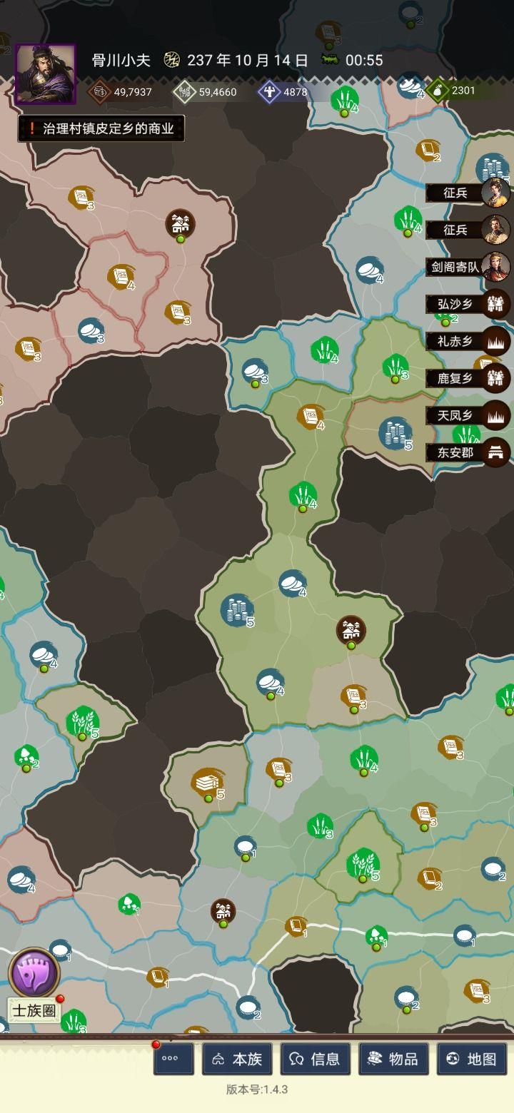 三国士族种田攻略分享,用高政或高魅力武将搭配五级地的加成与连通效率,不需要投入大量资源,就能快速升级五级地。不管是自家领地发展还是外出捡漏,都能轻松搞定一个富裕的地盘。