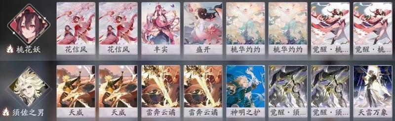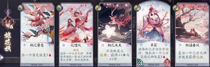 觉醒核心机制卡,桃花妖通过治疗或复活式神,每次行动永久提升2/2属性。