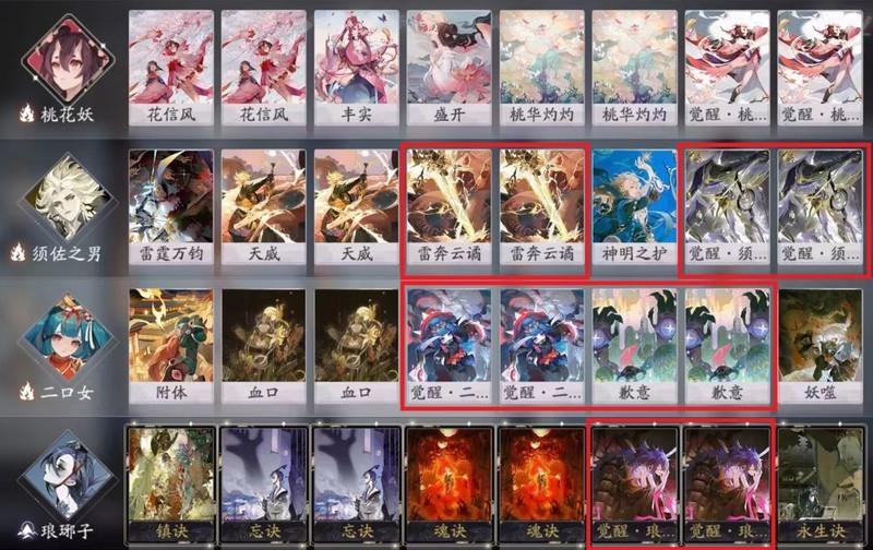 桃花妖琅琊子觉醒后不再随机发牌,改为桃花特定方向传递,从而提高叠寐咒触发概率。