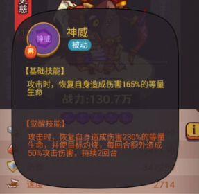 被动二浴血提升数值的技能,攻击直接提高35%,觉醒后还能为队友增加10%减伤效果,这样的加成已非常可观,相比之下,关羽和吕布的加成也只有30%。