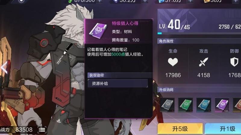 猎人等级上限受人物等级影响,前期应尽量使主力猎人等级与人物等级保持一致,以此快速提升战斗力。