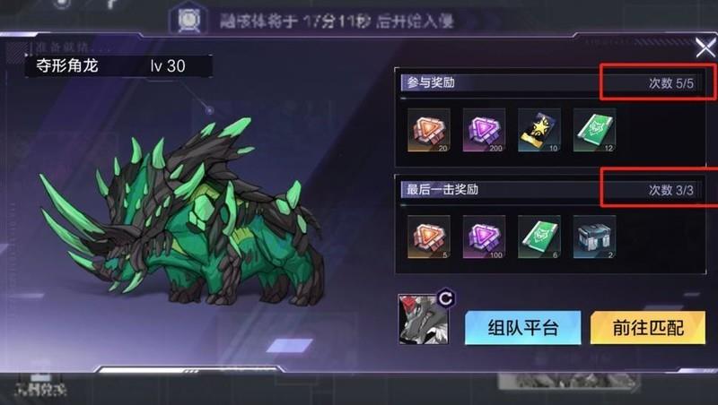在融核体持续期间,挑战次数不限,参与奖励可领取五次,最后一击奖励可领取三次。队伍中任意成员完成最后一击,全队均可获得对应奖励。
