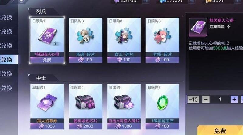 勋章可在军衔商店兑换多种强化指挥官的资源,如猎人碎片、招募券及芯片等实用道具。