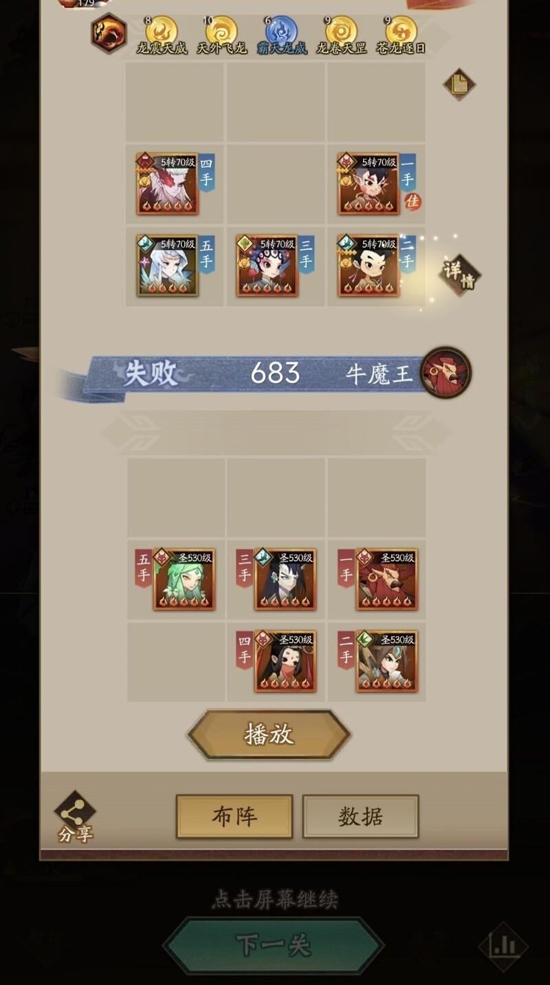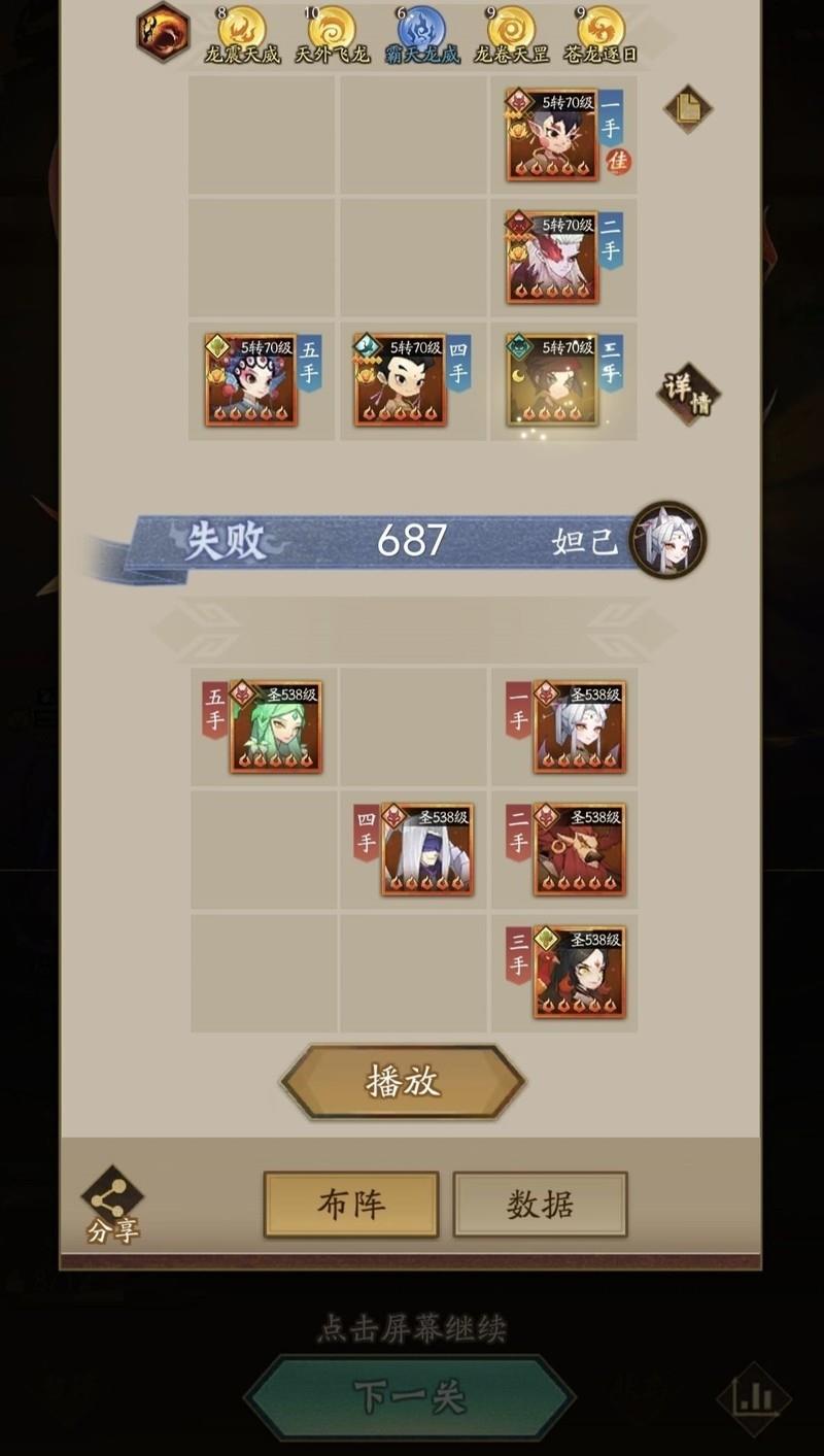 若没有降气技能,可使用试炼中获得的6级降气珠。通常在对方有韩湘子或自带叱咤字灵的情况下,第一回合用龙震天威降低对方属性,第二回合使用回气珠,第三回合再使用试炼降气珠。