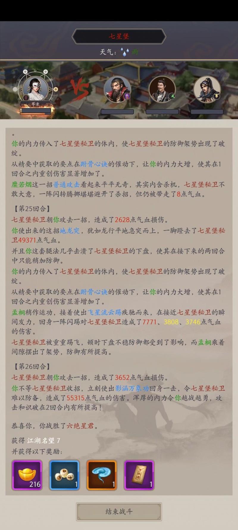 24-9一直打不过晴天刀和阴天剑,攒够内力升到26-10后,莽了三次直接过了雨天枪,连名刀都没触发。