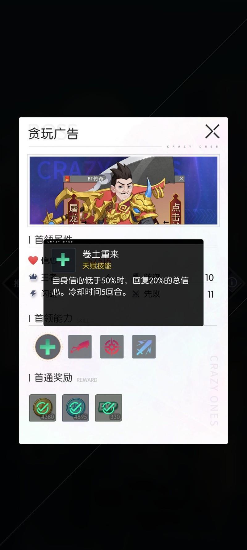 多数人吐槽的3-21防火墙,因其面板防御为500,建议使用纯伤害输出应对。