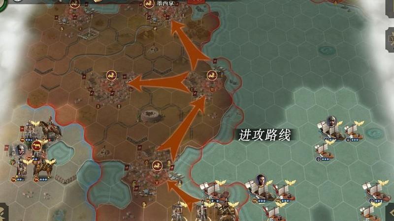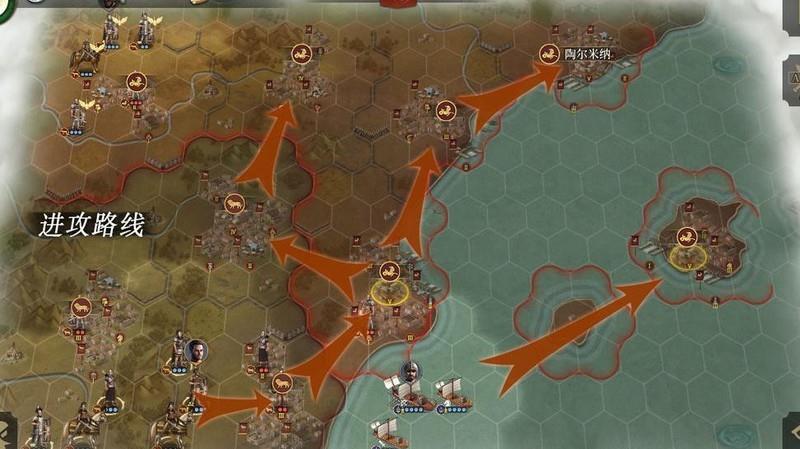 本关需守住五个战略要地,确保人口不少于四十五,并击溃三十五支敌军。开局按既定路线推进,依次攻占红圈标记的城池。夺取最右侧红圈城后,海上盟友部队将转由你指挥。随后继续向北扩张,稳固五城防线即可完成目标。若后期经济紧张,可出售部分建筑以补充人口需求。