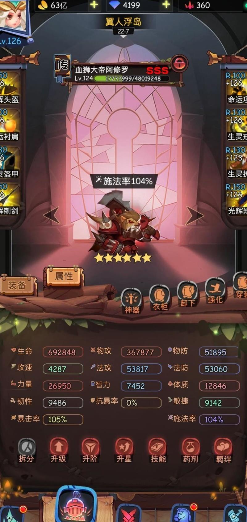 关于狮子的培养,有必要再次说明。之前有讨论引发争议,但我仍坚持原有看法。用血晶购买生灵并不划算,本质是靠运气,且实际需求有限,主要仅狮子、正义和暴怒等少数角色。相比之下,建议在120级前优先积累无尽币——这种资源相对容易获取。一旦达到120级,即可用无尽币购买所需生灵,再用血晶兑换三件光辉装备。如此搭配,既能快速成型,又能节省资源。我本人便是采用此方式,仅用血晶换了三件光辉,当天就完成狮子毕业装备,次日即洗出双百分属性,效率极高。