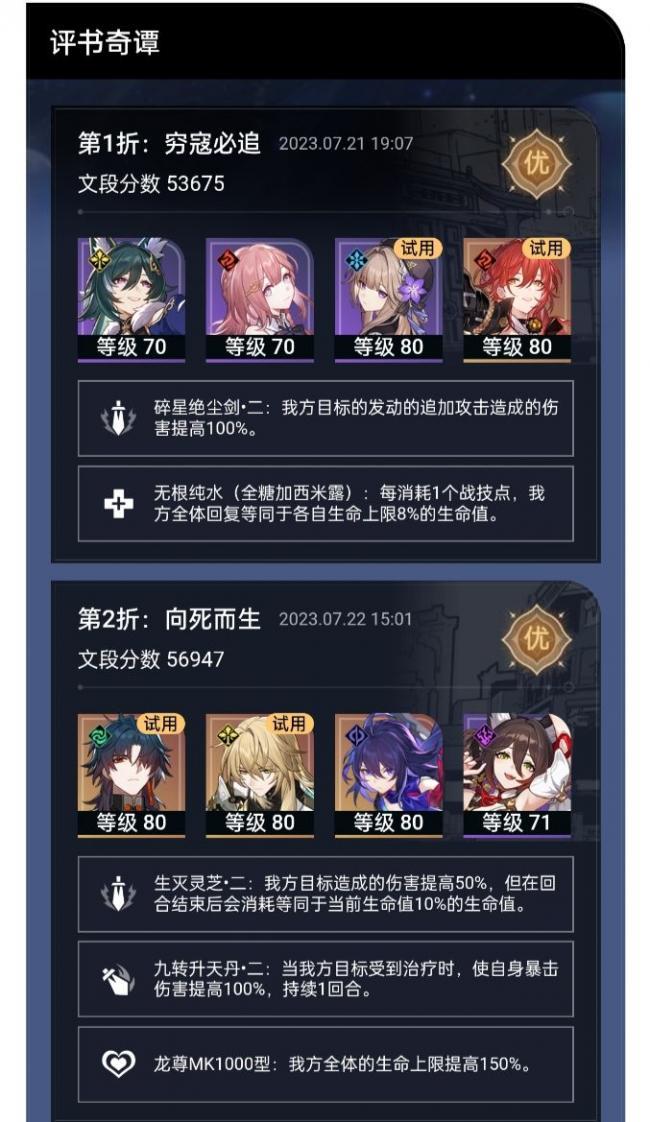 主角模板选择:碎星绝尘剑·二,无根纯水(半糖加椰果),追击专家,龙尊MK3000型配队:拿试用角色姬子加黑塔打输出,一个奶位和增伤辅助或双增伤辅助