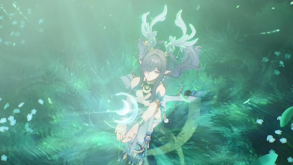 朔月诗篇:队友触发月绽放时,自身元素精通提升60~120点(持续10秒)。