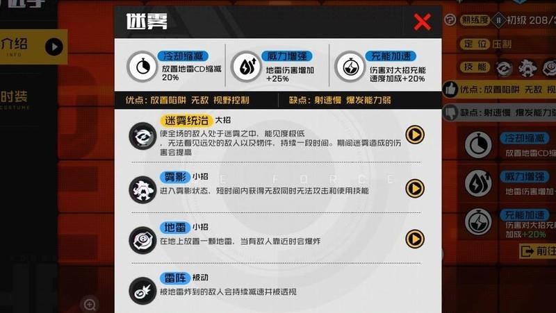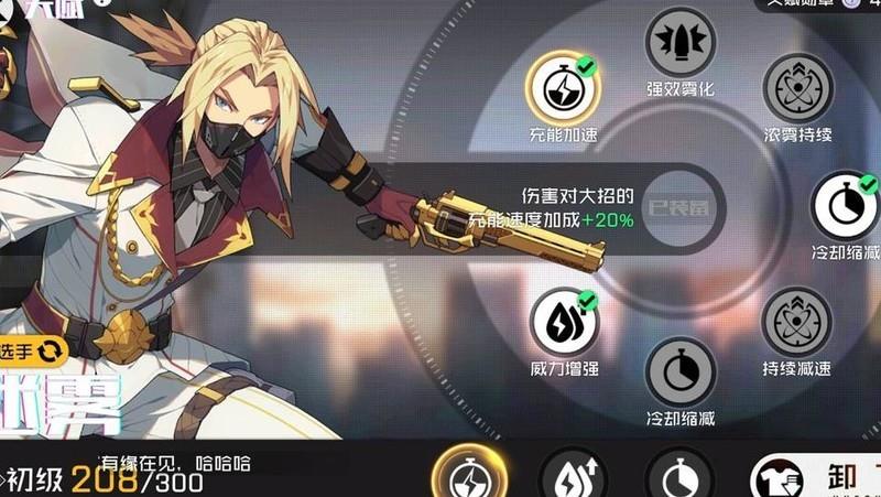 β小招—雾影:进入短暂无敌状态,期间无法攻击或释放技能,但可使用战备技能。