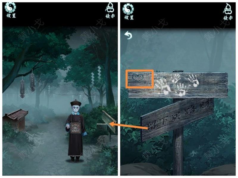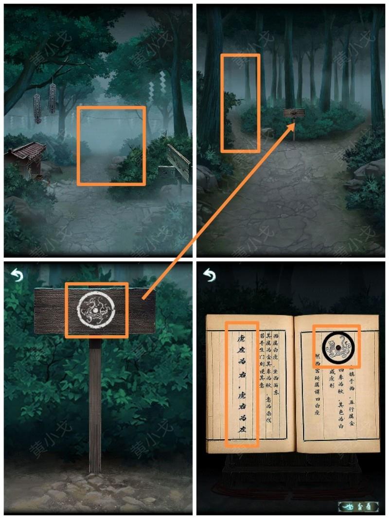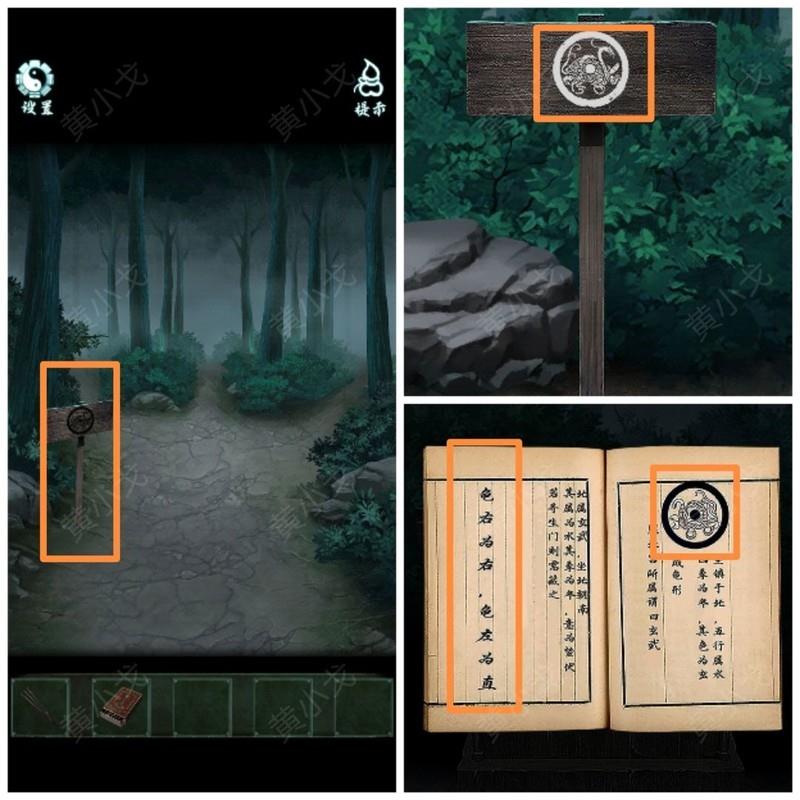 点击带有玄武图案的路牌,依据书中提示(龟右为右,龟左为直),选择右侧道路即可。