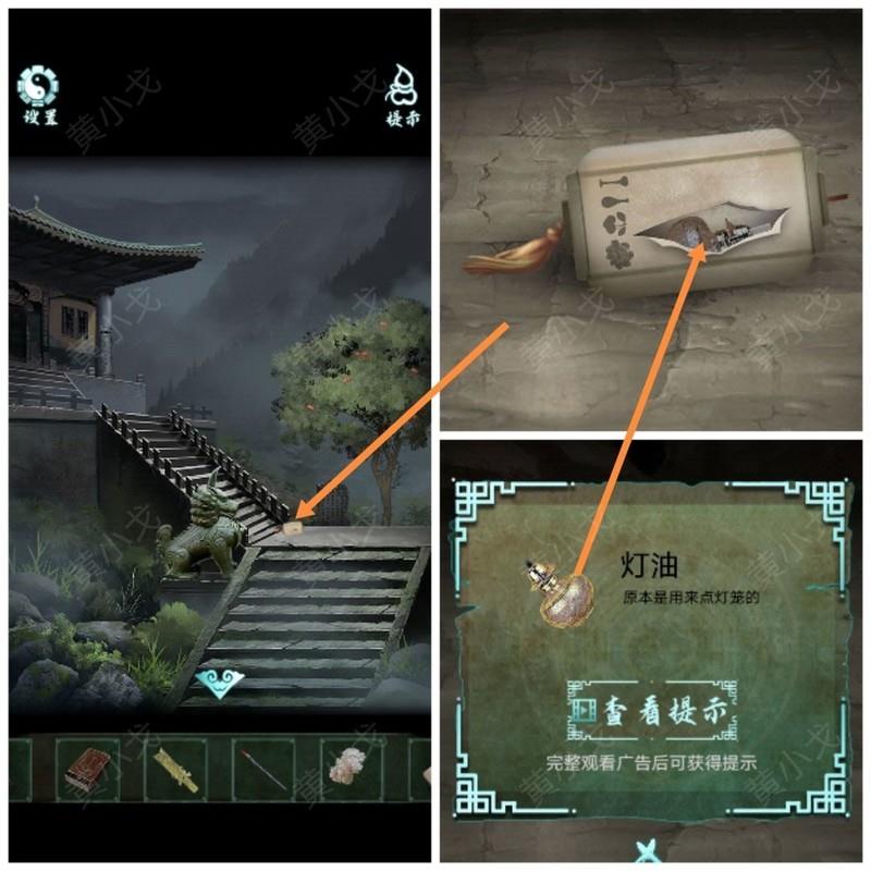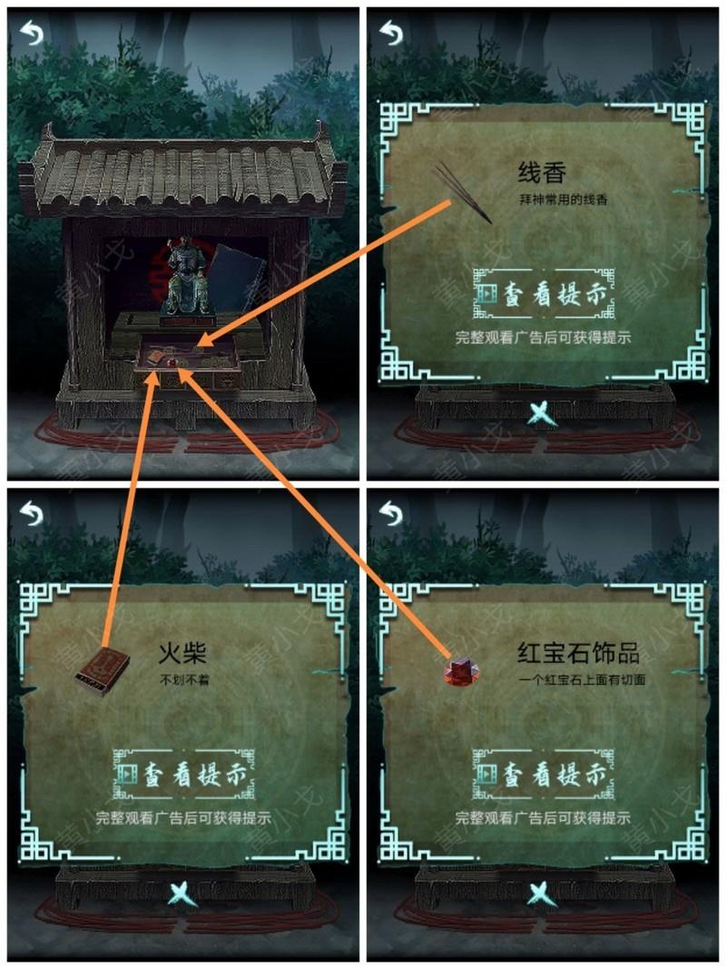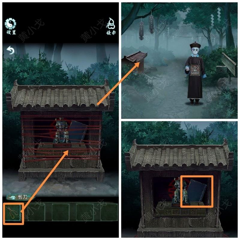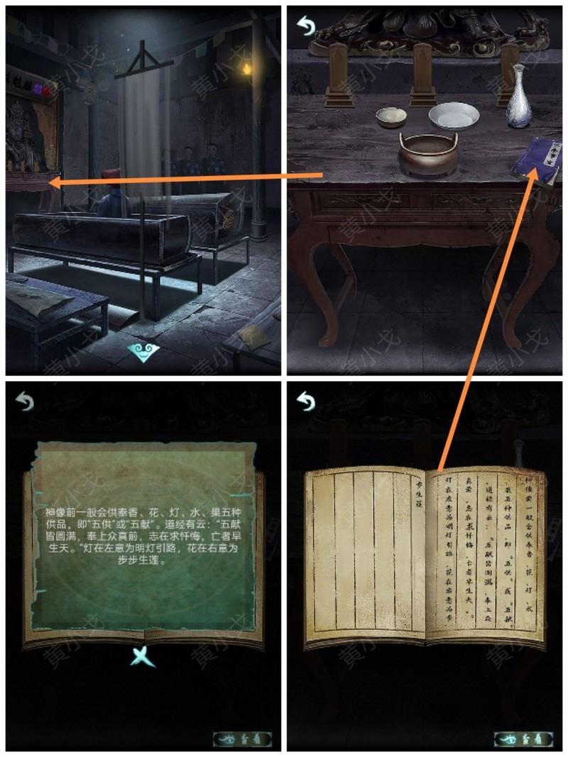 点击佛龛,使用剪刀剪断红线,查看书本内容。