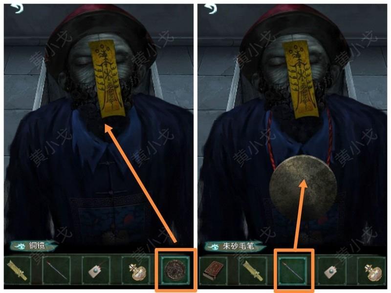 点击僵尸,装备铜镜,使用朱砂毛笔绘制符咒。