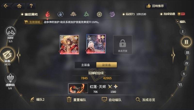 在回响配置方面,泰坦系列推荐携带彻底粉碎、绘本诵读时间以及温泉旅行各三张,并将其提升至80级。这些回响主要通过幻象征伐战·阿耆尼和英杰击退战·泰芙努特副本掉落获取,建议通过与高等级玩家组队反复刷本快速集齐。至于诸神系列,则建议配备三张锻造时间,两张为守护而战,两张图书馆的一角,两张射击训练以及一张极彩之虹,并全部升至80级。若奏鸣币不足,可用彻底粉碎代替图书馆的一角和极彩之虹,旅程伊始与狂乱之爪可作为射击训练的替代选项。但需要注意的是,为守护而战这张回响必须收集两张,无法被其他回响替代,否则将影响整体强度,因此若无法凑齐该回响,不建议优先培养火属性诸神队伍。