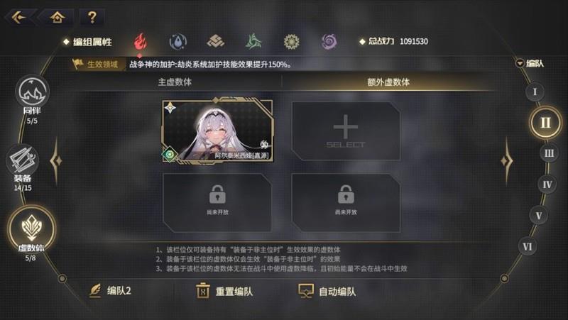 后三位虚数体可提供非主位加护,战斗中触发虚数降临时还能获得初始能量。