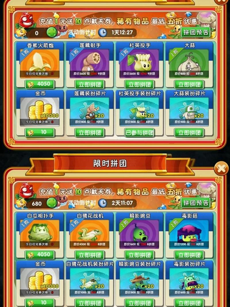 参与团购需集齐指定数量钻石方可购买植物或装扮,享受折扣优惠,返还钻石通常在次日早上九点前发放至账户。