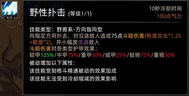 野性之魂开局增加基础格斗技能,具体如下:
